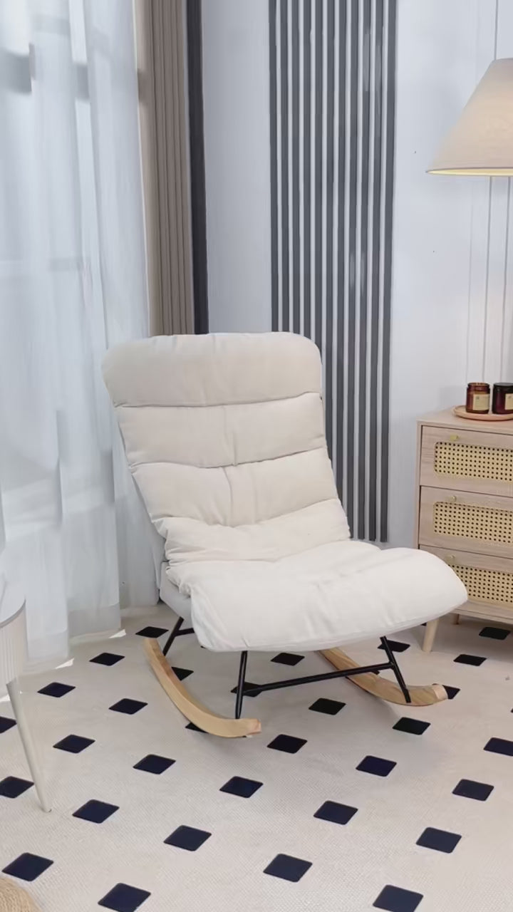 Schommelstoel met Hoge Rug – Comfortabele Lounge Relaxstoel – Gebroken wit